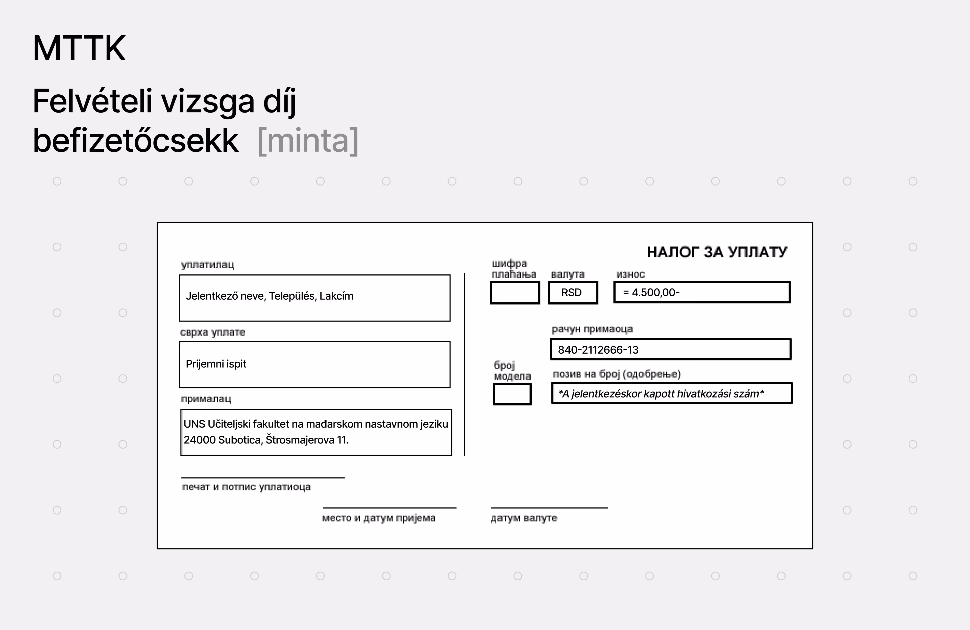 Azoknak a hallgatóknak, akik önköltséges hallgatóként kezdik meg tanulmányaikat, a tandíj első részletéről szóló befizetőcsekket be kell mutatniuk.